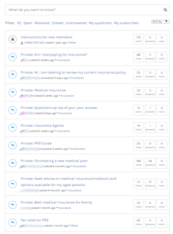 • Note 1: Ā  You might only see your own question under this Question list because almost all questions are posted as ā€˜Private’ by others, which you can’t view. Ā  The same applies – no other members can view your questions posted here. In fact, your questions are not visible in this Question list, which explains why you are also not able to see other member’s questions being listed. Ā  We respect the need for privacy of each and everyone of you when you post any questions in Private mode. Ā  https://askcf.com/wp-content/uploads/2018/01/screenshot-askcf.com-listQ.png